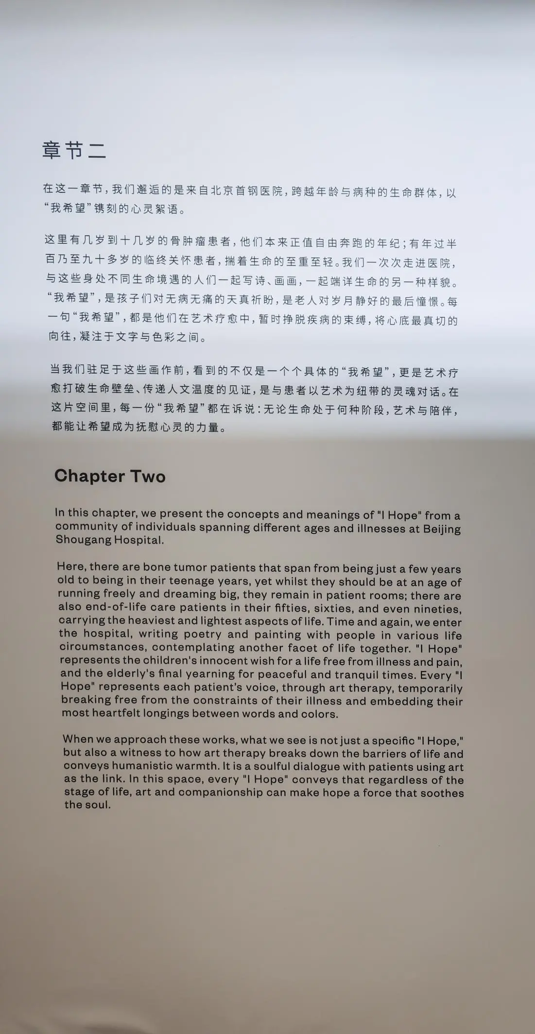 这场展览,凝结了4年多的时光与陪伴——清华附中国际部佟知霏、佟知玲发起的学生志愿者团队,走进北京仁育苑特需儿童之家、北京大学首钢医院安宁疗护病房与骨肿瘤病房,和被关爱的孩子、病患们一起创作了这些绘画与诗歌作品。每一件作品,都是生命、陪伴与希望的实践,是青春与岁月的对话。