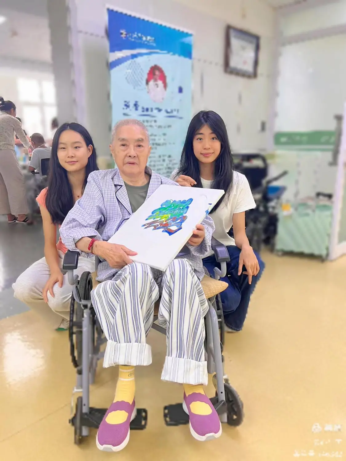 北京大学首钢医院安宁疗护社工钟毅表示,非常感谢佟知霏和佟知玲这些志愿者们,她们来到病房帮助临终患者洗头、理发、剪指甲等,这些很多成年人都不愿意做的事情,她们坚持下来,并且一直在做。再到后面的画画、读诗、写诗这样的艺术陪伴,极大的缓解了患者在医院中长期卧床、枯燥乏味治疗过程中的情绪波动,希望可以有更多的人可以加入到像她们一样的志愿服务中去。